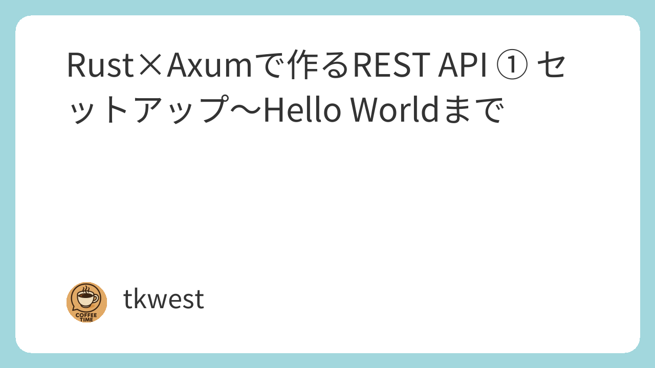 - 第1回(本記事):Rust Axum セットアップ〜Hello Worldまで